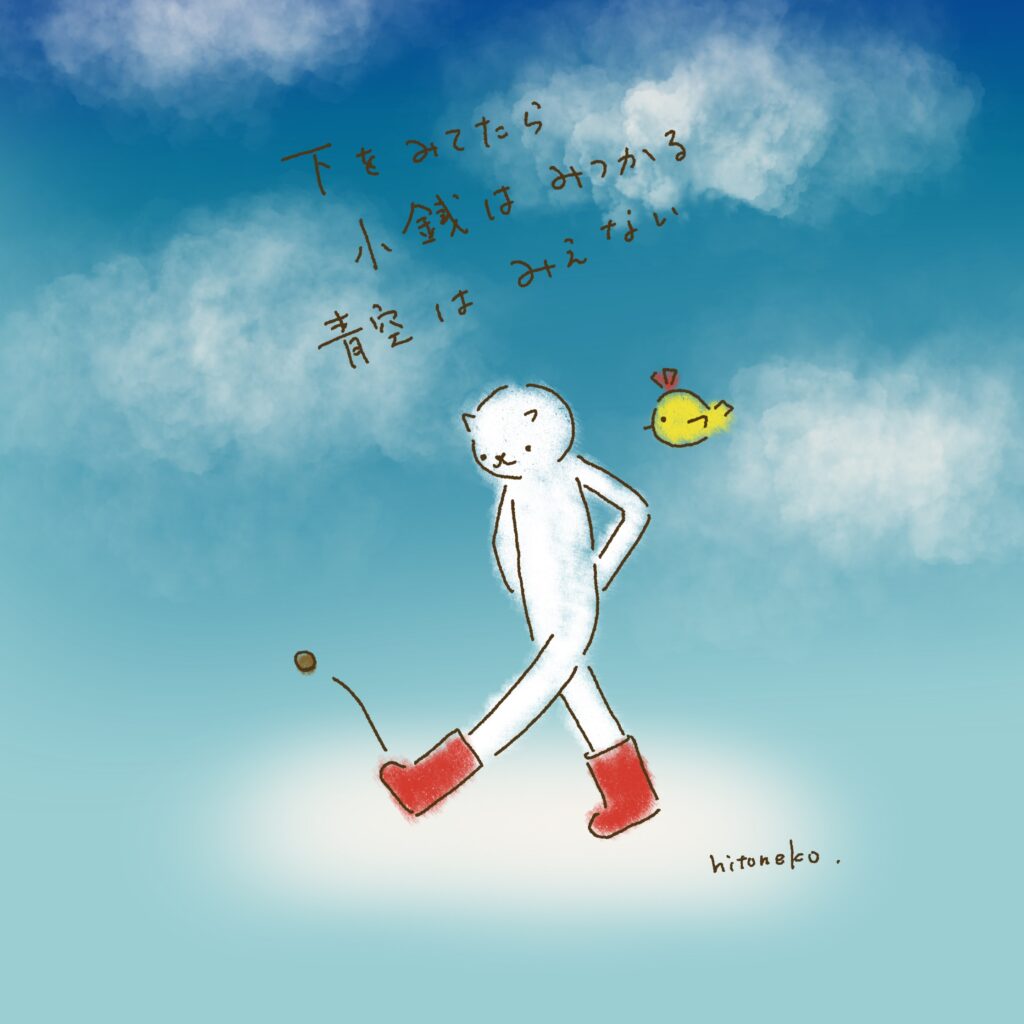 下をみてたら、小銭はみつかる。青空は見えない。 2022年12月24日 下をみてたら、小銭はみつかる。 青空は見えない。 If you look down, you’ll find coins. You can’t see the blue sky.