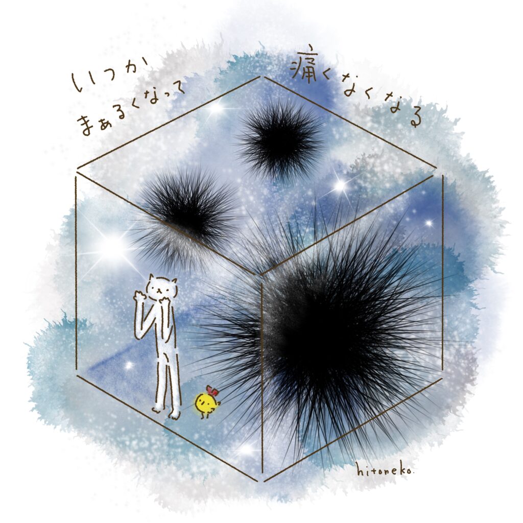 いつかまぁるくなって、痛くなくなる。 2023年1月28日 いつかまぁるくなって、痛くなくなる。 It will one day become round and gradually become less painful.
